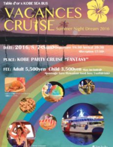 クムフラマリコレイイリマラニとクーハイハラウ京都校のフラダンサーズがハワイアンライブとフラショーをお届けします。 ○開催日時:2016年8月7日(日)18時30分出港 20時30分着岸 ○受付開始:17時30分 ○料金: […]